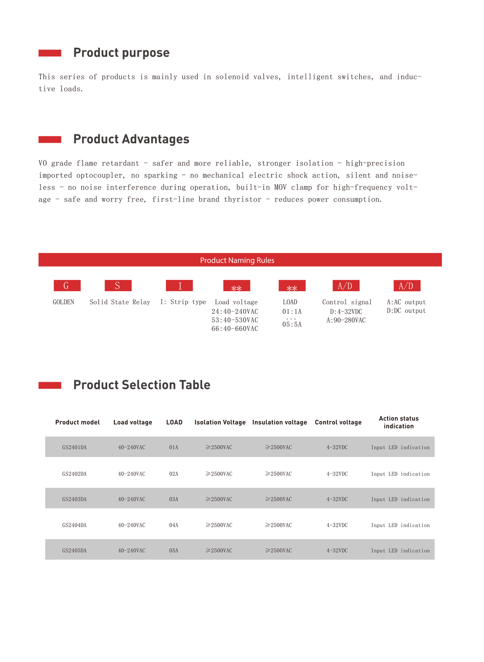 | GSI2402DA-J3 | 24:12-240VAC | 02A | 3-32VDC | ≥1250VDC | ≥1250VDC | 输入LED灯指示 | 联系销售专员 | ||
