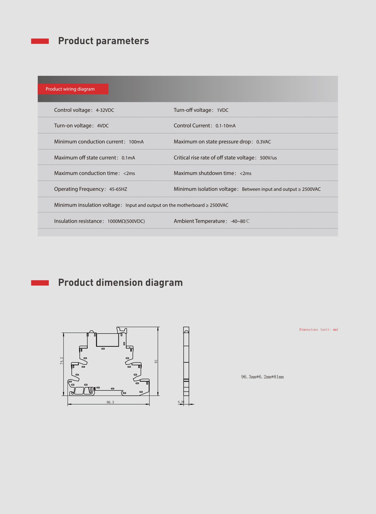 | 产品编码 | 产品型号 | 负载电压 | 负载电流 | 峰值电压 | 控制信号 | 隔离电压 | 绝缘电压 | 动作指示 | 价格 |